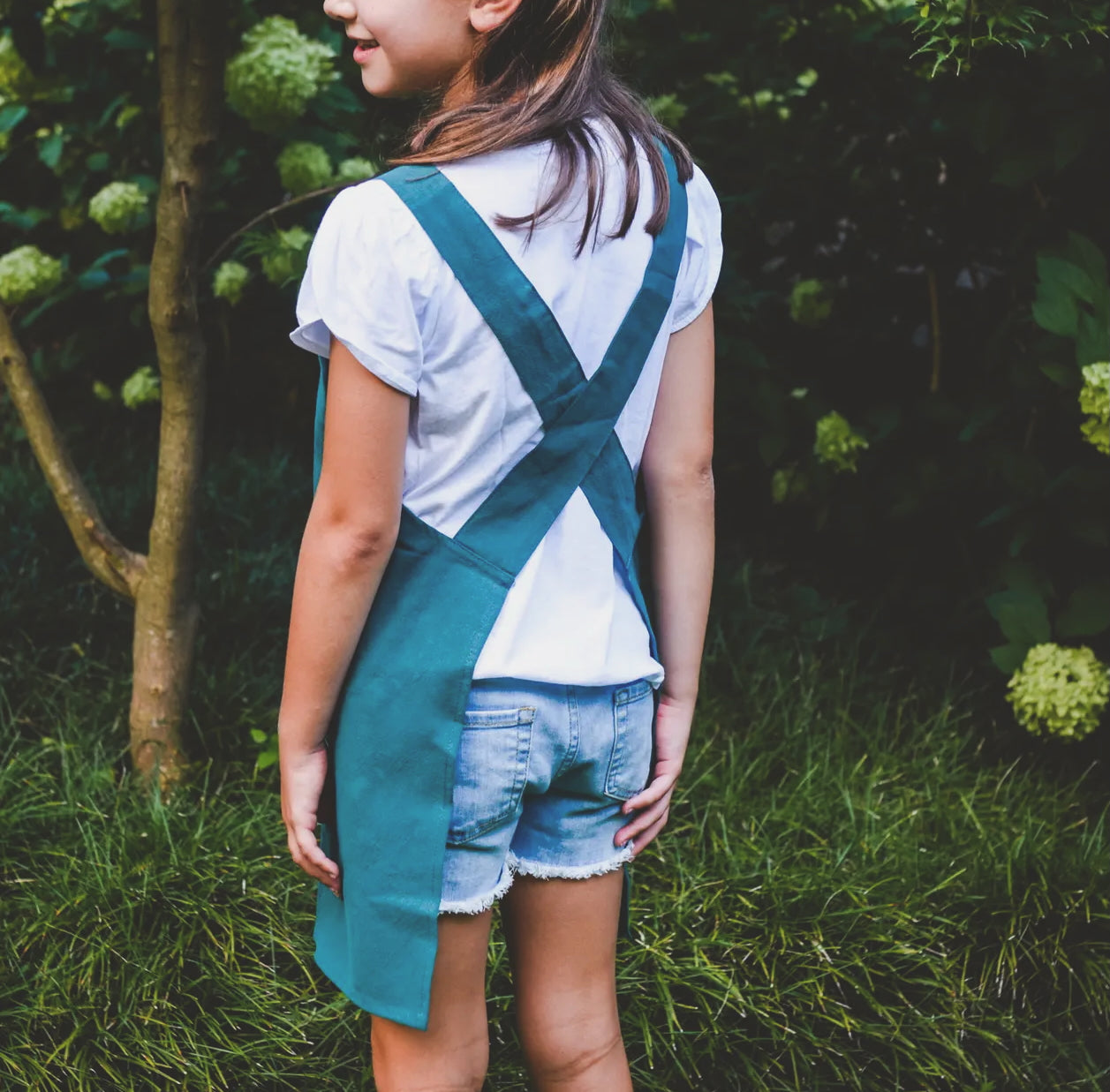The versatile cross-back cotton apron is the best apron for painting, printing, cooking and everything in between! The cross-back design is easy-on and easy-off, with no strings attached.
